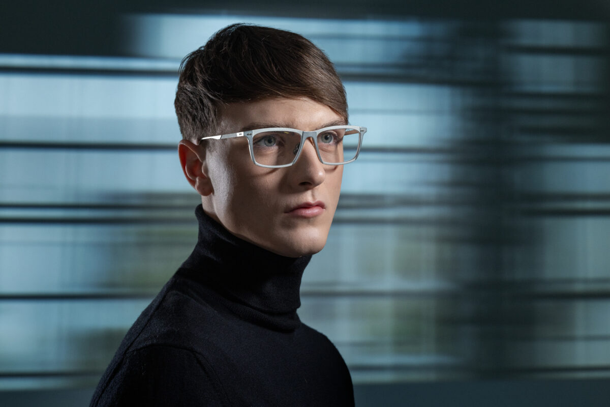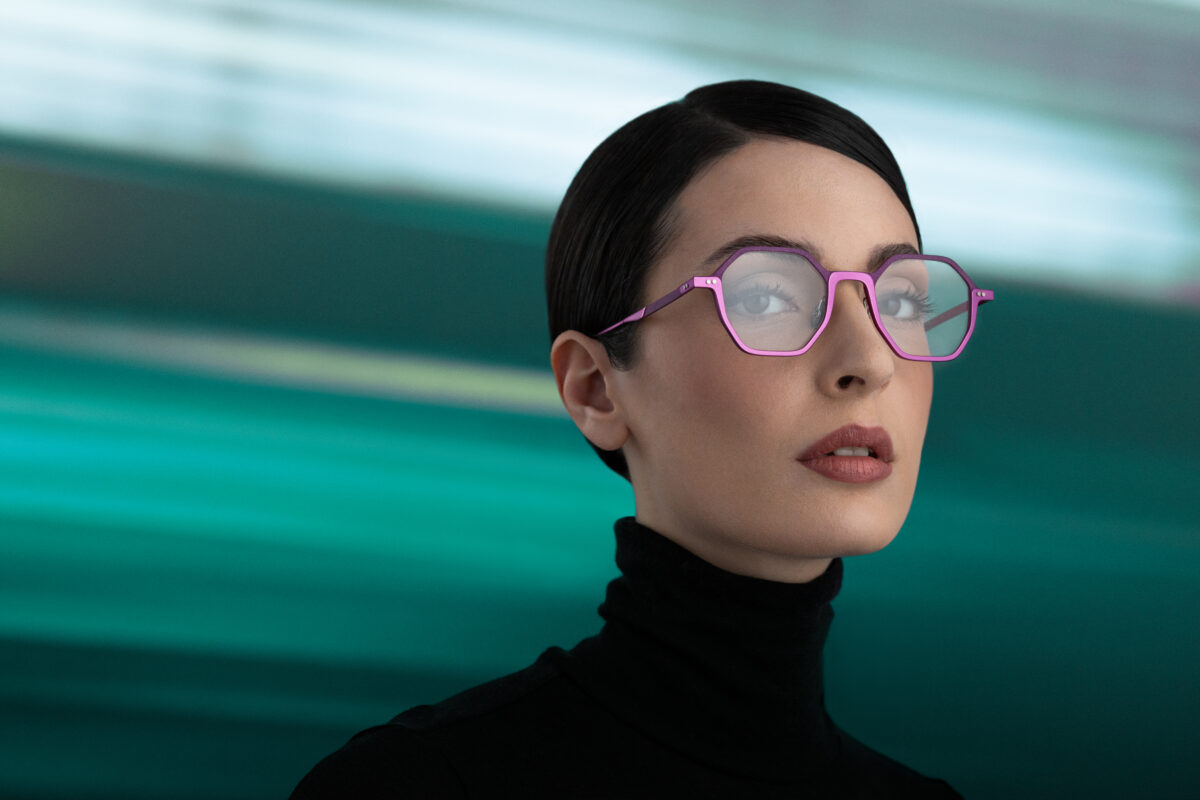 Uno shooting che non si limita a fotografare gli occhiali, ma li mette in corsa verso il futuro.
